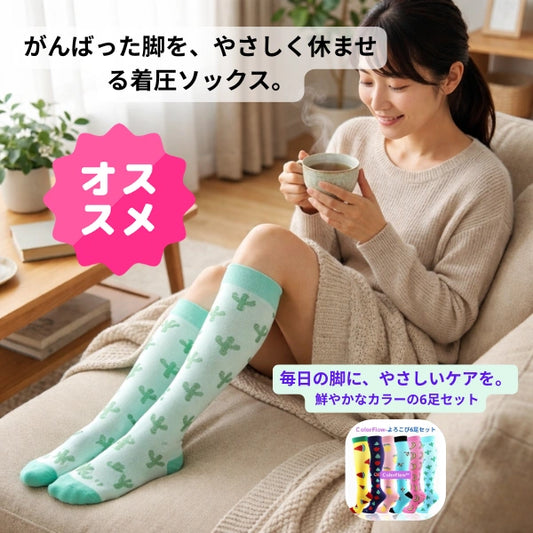 ColorFlow™ カラフル着圧ソックス(むくみ防止・やさしい着圧)3足・6足セット